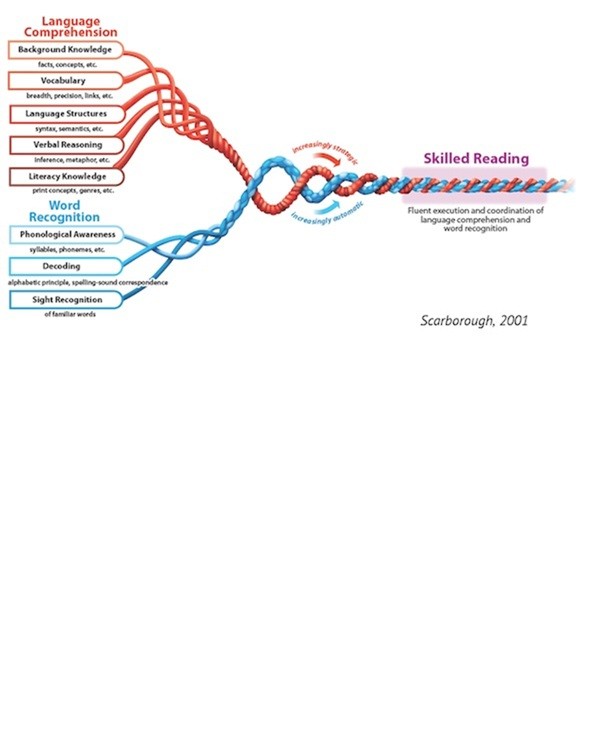 When we think of Scarborough’s reading rope, we know to be a skilled reader there needs to be an intergration between the strands of language comprehension and word recognition.